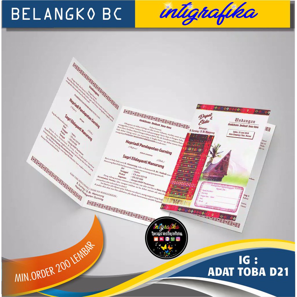Informasi undangan yang kami bagikan semoga menjadi informasi terbaik dan bisa . Contoh undangan nikah batak contoh isi undangan. Kamu tengah membuat kartu undangan dan membutuhkan contoh undangan pernikahan adat batak untuk hari spesialmu? 230 gram bahan isi (teks) : Undangan pernikahan adat batak toba murah cantik.
